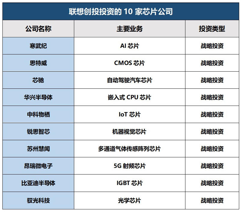 联想悄然布局芯片领域:已投资23家芯片企业,寒武纪、展讯、华虹半导体均在列