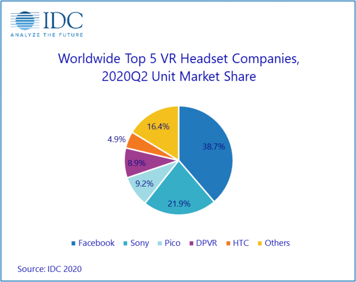 IDC发布报告称,虽然疫情导致供应链中断,虚拟现实(VR)头显在2020年下降6.7%,但将在2021年出现46.2%的两位数增长。