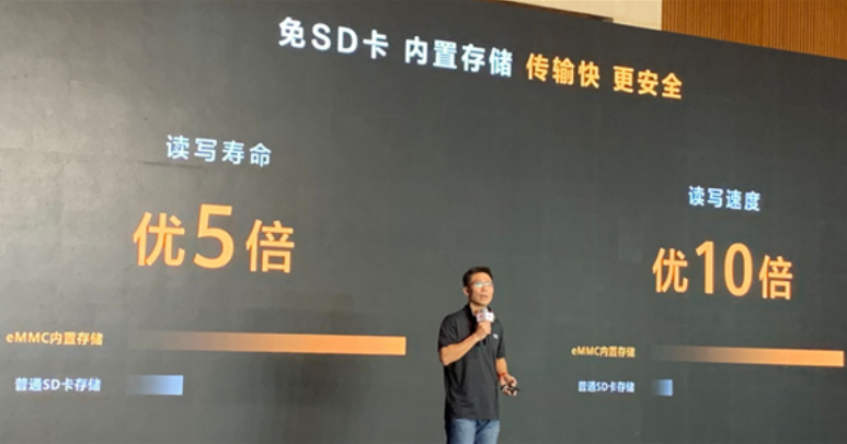 在2020华为智选品鉴会上,华为正式推出华为智选智能摄像头Pro系列,这是首款支持鸿蒙OS分布式技术的摄像头,配备32GB、64GB的eMMC闪存,读写寿命是普通SD卡的5倍,速度速度是SD卡的10倍。