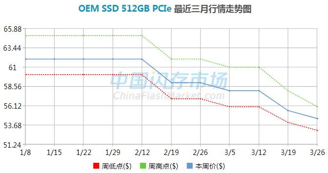 行业市场PCIe SSD 128GB价格由21美金下跌至20.5美金,256GB价格则从32.5美金跌至32美金,512GB价格由55.5美金跌至54.5美金。